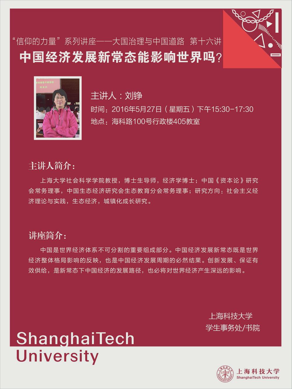 标题:“信仰的力量”系列讲座——大国治理与中国道路:第十六讲 中国经济发展新常态能影响世界吗?