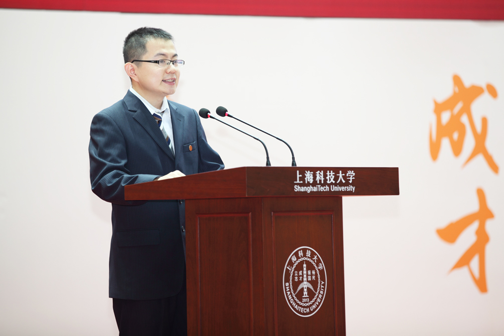 2016年,我校继续采取“综合评价、择优录取、多元选择”的招生模式,面向全国14个省市招收了353名本科生;继续依托中科院上海分院各研究院所招收了424名研究生。开学典礼上,物质科学与技术学院院长杨培东、副院长刘志,生命科学与技术学院执行院长吴家睿,信息科学与技术学院执行院长马毅、副院长周宇宣读了本学院新生名单,他们身后的大屏幕上同步展示有学生自己制作的个人介绍,五花八门、个性鲜明,使在座师生员工和来宾真切感受到新生的朝气和热情,以及我校“以学生为本”的办学理念。