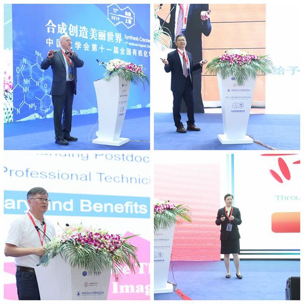 大会学术委员会主席、中科院院士、上海交通大学常务副校长丁奎岭教授在致辞中阐明了有机化学学科的重要意义以及中国科学家在有机化学领域取得的成就。他热情洋溢地表示,国内有机化学学科发展迅速,中国科学家在化学生物学研究、新药分子发现、新材料创制、大宗化学品的绿色制造方面不断取得重大突破,一方面注重科学上的交叉、原创、学术上的不断追求卓越和优雅,同时也十分注重研究成果的转化,投身国民经济的主战场,为可持续的化学、医药、材料等工业的发展做出了可圈可点的贡献。一批新颖结构的配体应用于系列有机化学反应的高效转化,并不断被国内外的学者频繁应用于他们的研究工作或者被企业应用于工业过程,比如周氏催化剂、冯氏配体和Ullmann-Ma 反应,都是我国有机化学家杰出的代表成果。他们三位获得了2018年物质科学的“未来科学大奖”,以及马大为研究员成为获得美国化学会 Arthur Cope Scholar Award 殊荣的首位大陆学者。