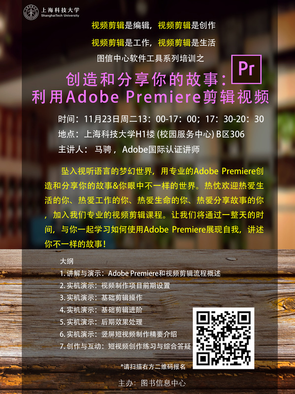 【图信中心】创造和分享你的故事:利用Adobe Premiere剪辑视频
