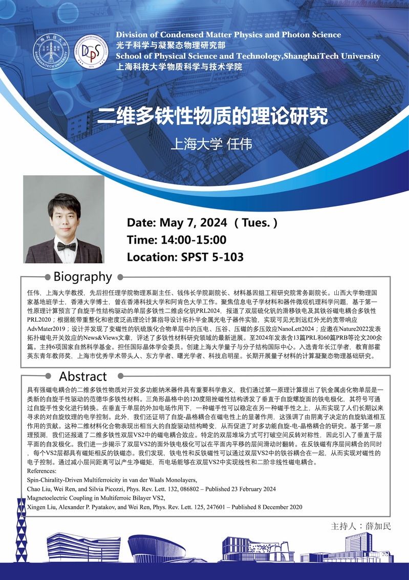 【物质学院】二维多铁性物质的理论研究