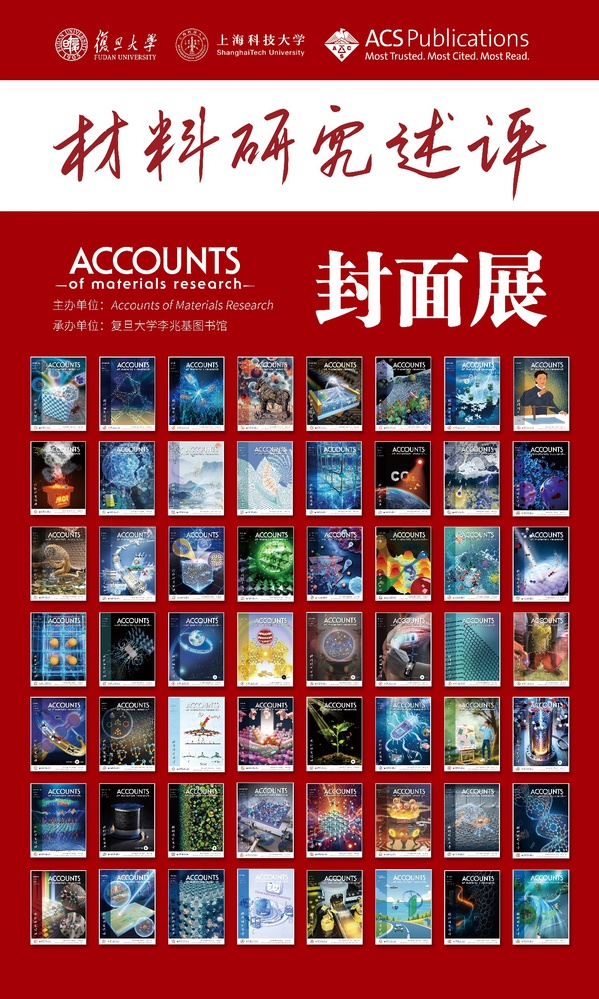 2025年10月10日,《材料研究述评》(Accounts of Materials Research,AMR)封面展在复旦大学李兆基图书馆开幕。本次展览由AMR与复旦大学李兆基图书馆合作举办,展出了近60幅AMR期刊封面,涵盖催化材料、多孔材料、微纳材料、光电材料、生物医用材料、储能材料以及新材料设计等主题,也介绍了复旦大学学者发表于AMR的文章,展现了AMR刊出的材料科学与工程领域优秀研究成果,让读者在翻阅典籍之余,近距离感受科学研究与视觉设计的交融之美,更为促进学术交流助力。