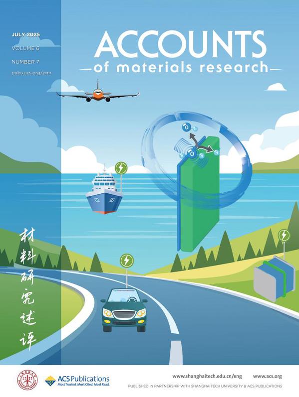 图5:2025年第七期封面文章 Microscale Bipolar Interfaces for High-Power Fuel Cells (Jianping Chen, Kritika Sharma, Zhongyang Wang*, Shrihari Sankarasubramanian*, and Vijay Ramani*. Acc. Mater. Res. 2025, 6, 7, 865–875. https://pubs.acs.org/doi/10.1021/accountsmr.5c00039) 来自美国阿拉巴马大学王中阳教授团队与华盛顿大学Ramani教授、德州大学圣安东尼奥分校Sankarasubramanian教授合作团队,系统总结了微尺度双极界面(PMBI)的设计原理与性能优势,详细讨论了其在直接硼氢化物燃料电池、直接甲醇燃料电池等体系中的应用突破,并对未来自修复界面、光-电耦合调控等发展方向进行了展望。