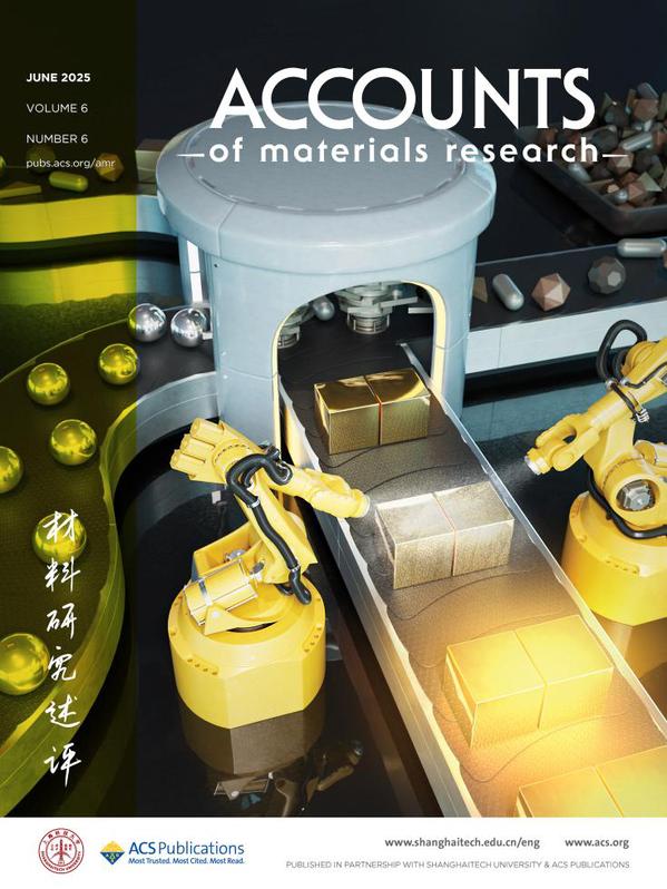 图4:2025年第六期封面文章 Synthesis of Homogeneous Plasmonic Nanostructures for Generating Uniform and Reproducible Photonic Environments (Yoonhee Kim, Yuna Kwak, Jihyeon Choi, and Jwa-Min Nam*. Acc. Mater. Res. 2025, 6, 6, 742–753. https://pubs.acs.org/doi/10.1021/accountsmr.5c00043) 来自韩国首尔大学Jwa-Min Nam教授团队,介绍了利用均质等离子体纳米粒子及其组装结构生成均匀、可重现的光子环境的综合策略和见解。文章探究了简单等离子体纳米结构的合成方法(成核控制、生长控制和形状纯化),讨论了进一步的结构改进,展示了这些获得结构均匀性的合成方法可以转化为一致且可重复的光学信号。未来结合机器学习辅助纳米结构设计的最新进展,有望进一步优化结构精度,开发新的合成路线,加速实现实用的等离子体平台。