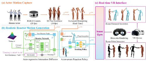 当前人机交互现有方法的“响应延迟”与“物理不一致”问题会显著降低用户体验并影响系统安全性。为此,研究团队提出了一种统一的实时交互合成框架 Human-X。在 Inter-X 和 InterHuman 等多个人-人交互数据集上的全面验证显示,其性能明显优于当前主流方法,在VR/AR、社交机器人、数字人交互等沉浸式人机协同场景中展现出广泛的应用潜力。