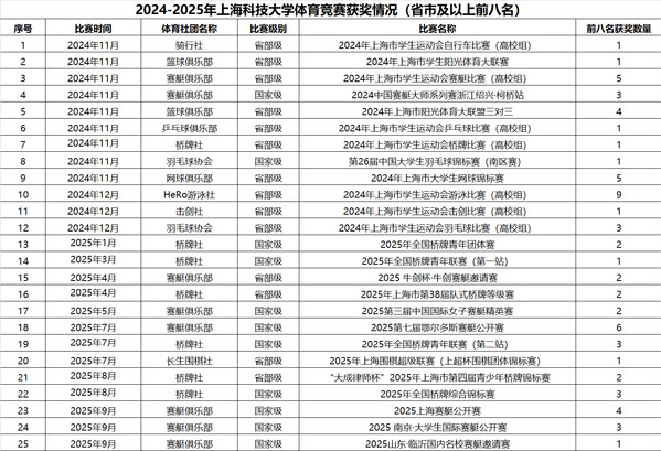体育竞赛获奖情况