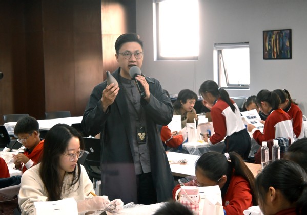 当天下午,图文展配套活动“文物修复工作坊”同期举办。上海博物馆副研究馆员、国家级非物质文化遗产代表项目“古陶瓷修复技艺”第五代传人张力程,带领上科大及附属学校学生一起体验瓷瓶修复,在实践中了解陶瓷修复的基本步骤与原理,收获更为立体的博物馆教育体验。