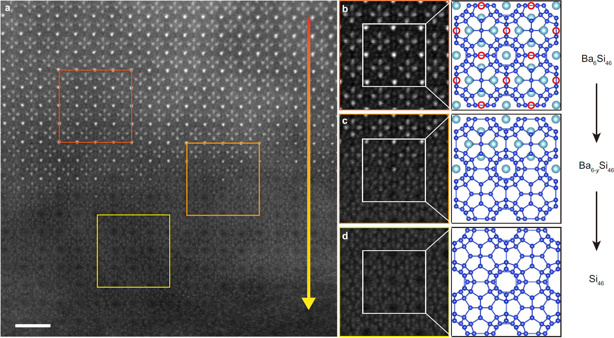 图:大笼中Ba原子的逐步缺失及无客体纯Si46框架的实验结果图