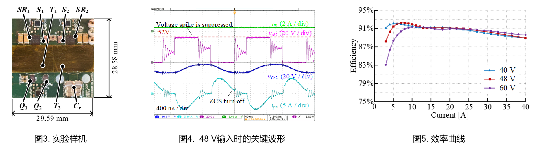 针对这一关键问题,研究人员创新性地引入有源钳位技术,构建了一种具备零电流关断(ZCD)能力的软开关CDR拓扑。该设计有效抑制了开关过程中的电压尖峰,显著降低了开关损耗,并消除了传统方案中存在的占空比丢失与体二极管反向恢复环流问题。系统采用脉宽调制(PWM)实现输出电压调节,支持40V–60V宽范围输入电压,适用于不间断电源场景,实测峰值效率达到92.24%。
