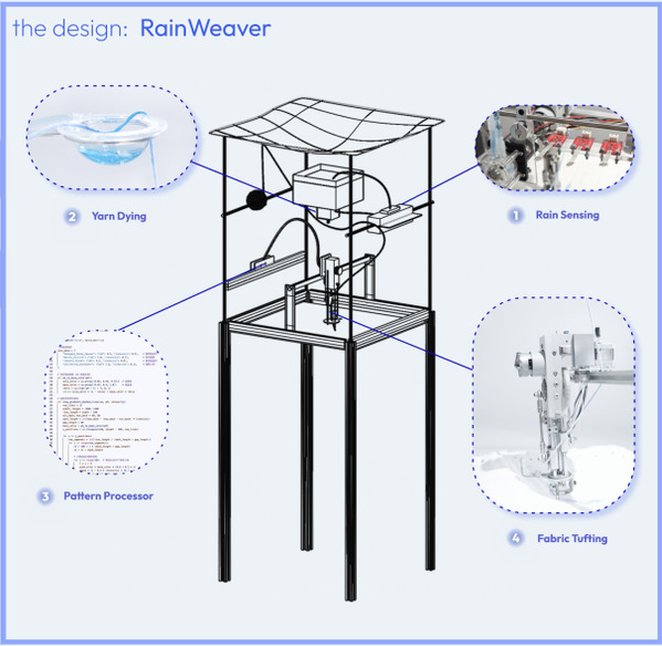 实验室团队表示,作品最终呈现的不仅是一件织物,更是一种“倾听自然”的设计方法论——通过记录雨的行为、节奏与随机性,将自然介入视为设计过程中的协作者,而非外部变量。