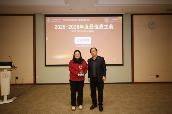1月16日,上海科技大学2026年新春校企座谈会暨雇主颁奖仪式在学校会议中心举办,副校长吴强出席并致辞。本次活动以“AI时代校招变革与人才共育新路径”为核心主题,汇聚了字节跳动、小米集团、中兴通讯、上汽集团大乘用车板块、奇瑞汽车、理想汽车、交通银行上海分行、君实生物、中石化上海研究院、安集科技、晶晨半导体、白帆生物等12家优质企业代表,与各院所就业工作负责人及师生代表齐聚一堂,共话校企合作新路径。校党委学工部部长、学生事务处处长刘勤主持活动。