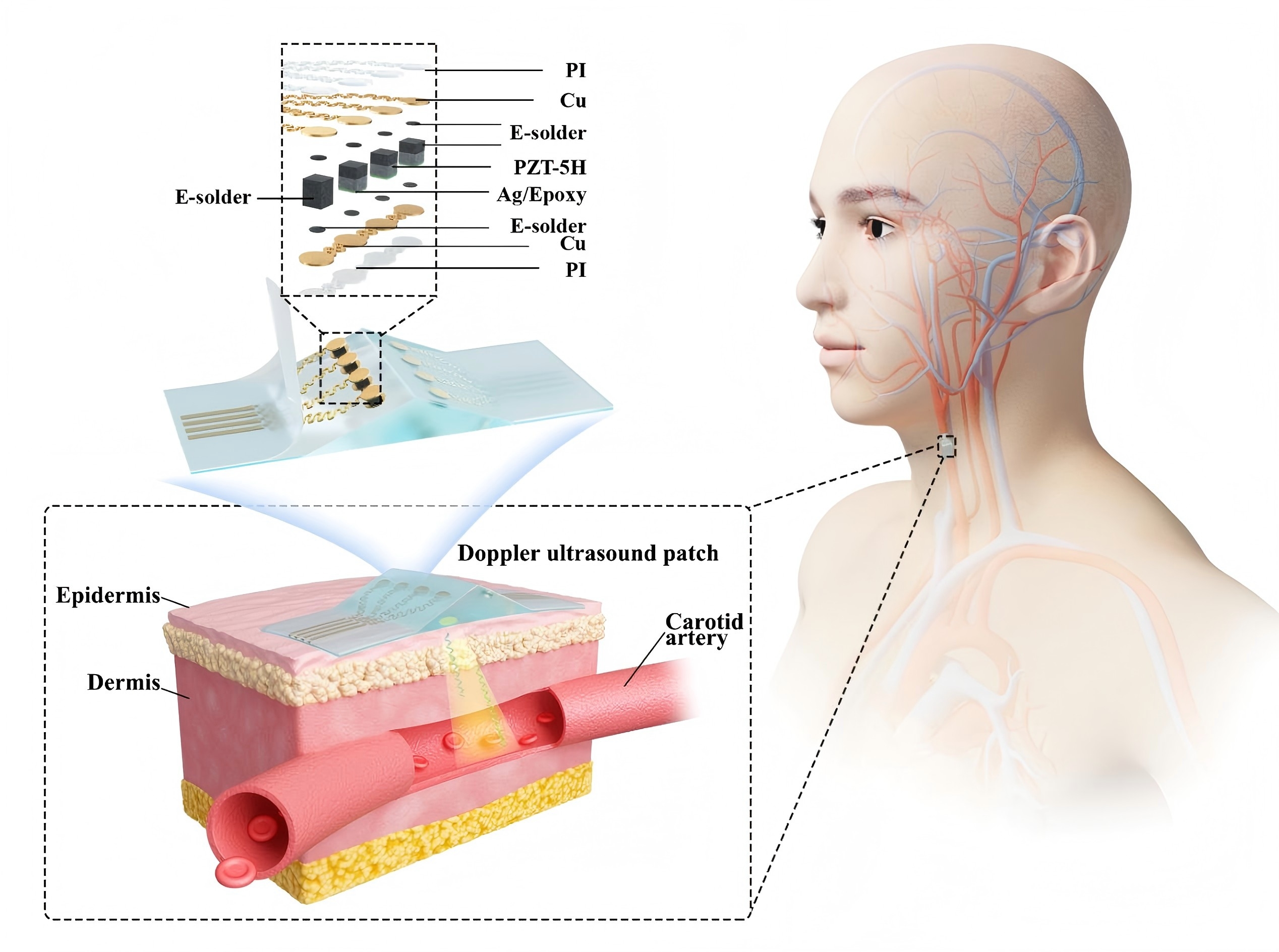 近日,上海科技大学生物医学工程学院彭畅团队在仪器领域权威期刊Measurement发表一项突破性研究,报道了一种用于连续血流监测的可拉伸多普勒超声贴片。该贴片轻薄柔软、可在日常活动中稳定贴合皮肤,有望把以往依赖医院设备和专业操作的血流监测,进一步推进到更便捷的居家长期健康管理场景。