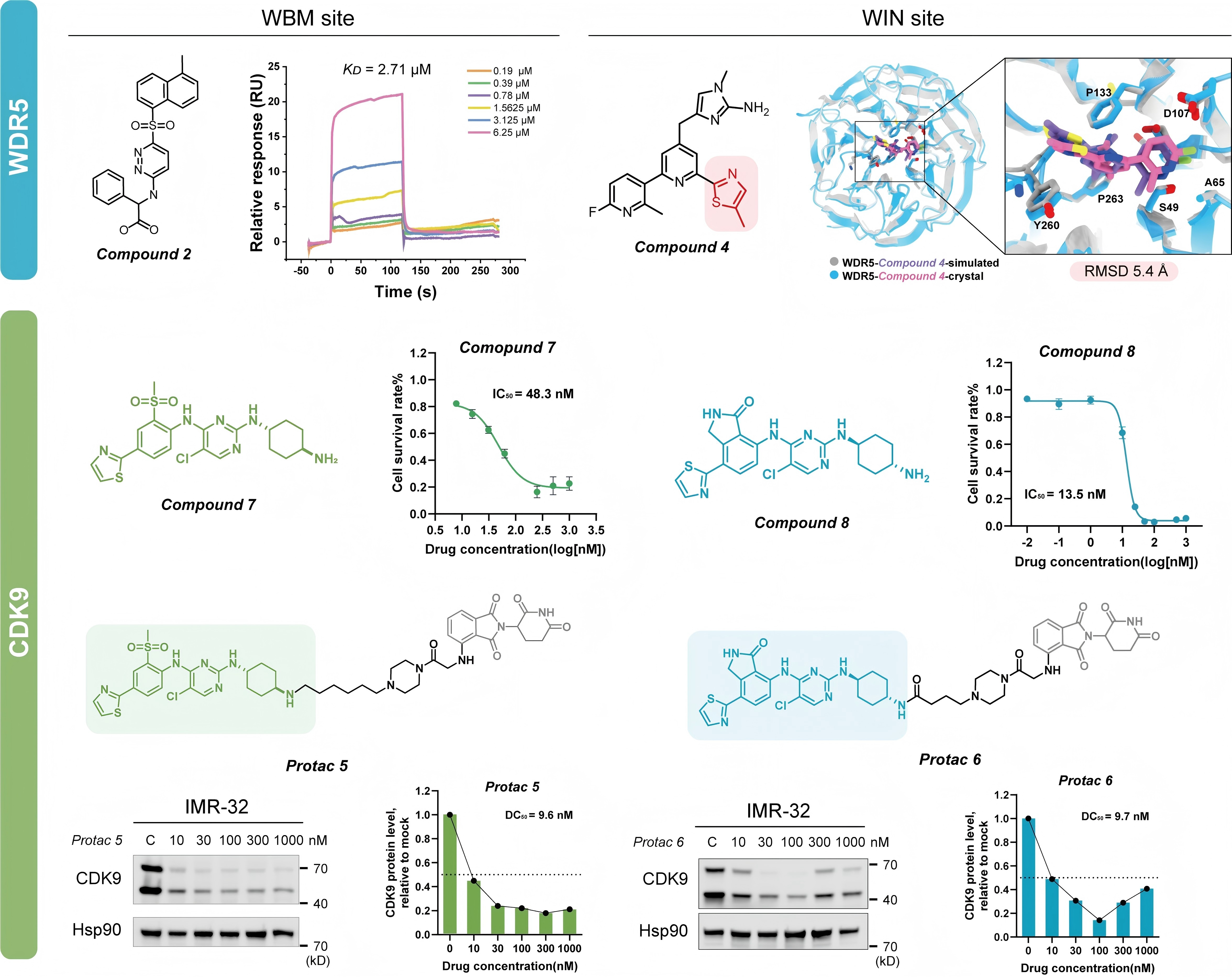 图二:DeepDegradome靶向WDR5与CDK9开展PPI阻断剂和PROTAC生成应用示例