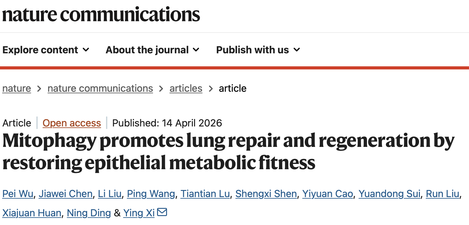 近日,上海科技大学生命科学与技术学院席莹课题组的研究成果以“Mitophagy promotes lung repair and regeneration by restoring epithelial metabolic fitness” 为题发表于《自然-通讯》(Nature Communications),揭示了线粒体自噬在肺损伤修复中的关键作用,并创新性提出靶向抑制线粒体去泛素化酶USP30,有望为急慢性肺泡损伤相关疾病提供全新干预策略。