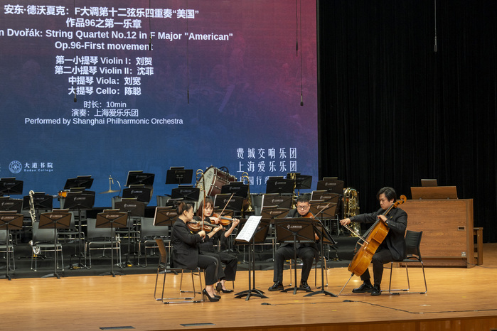 The evening’s repertoire balanced classical elegance with creative expression. In the first half, the two orchestras’ string quartets performed traditional chamber works by Antonín Dvořák and Felix Mendelssohn, showcasing the timeless charm of classical music.