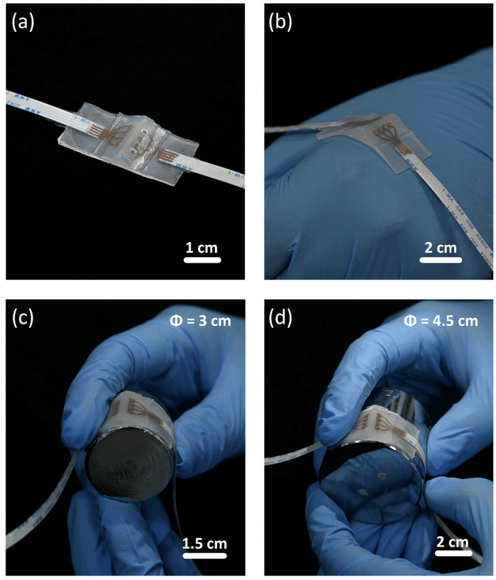 Physical demonstration of the stretchable Doppler ultrasound patch.