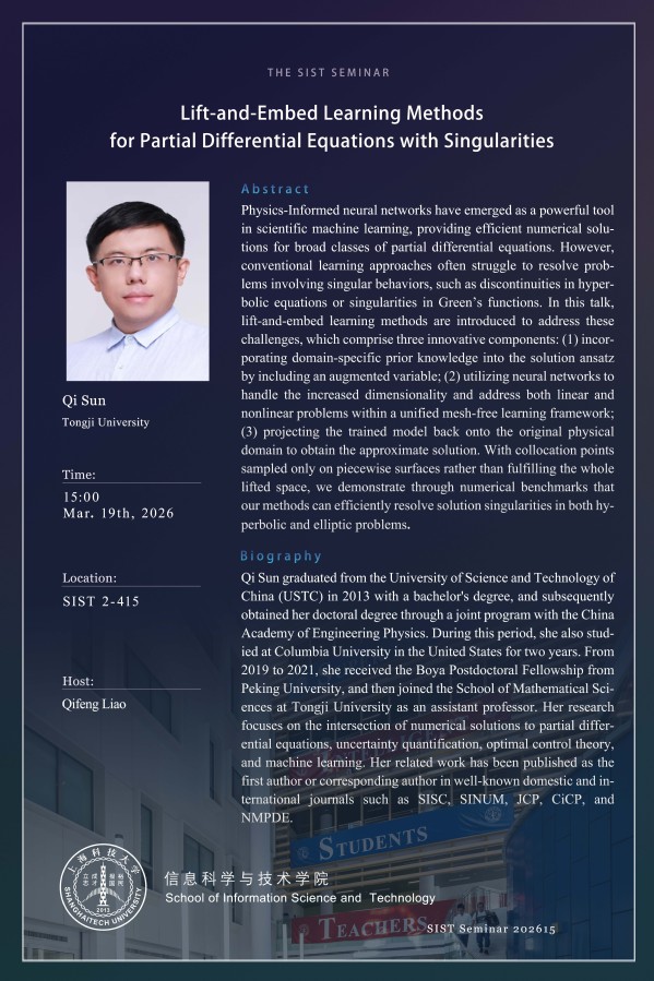 [SIST Seminar] Lift-and-Embed Learning Methods for Partial Differential Equations with Singularities