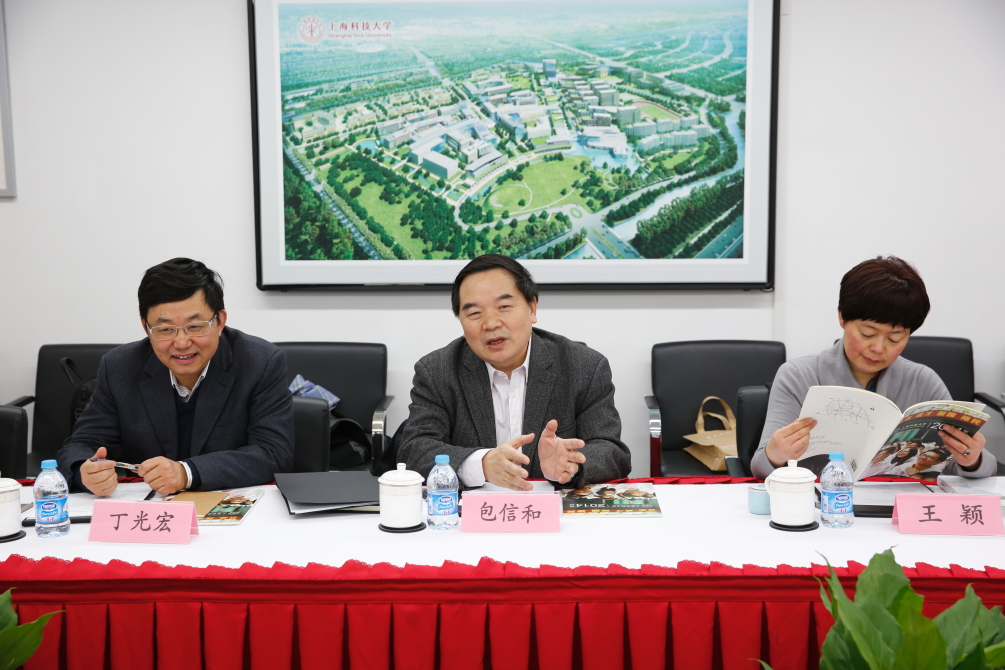 座谈会前,印杰陪同包信和一行参观了基本建成的上科大张江新校园。