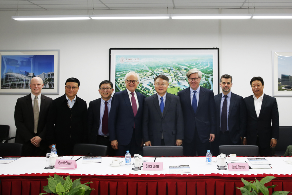 3月24日下午,美国布鲁金斯学会董事会联合主席约翰·桑顿(John L.Thornton)率团访问我校,随行的还有学会执行副主席Martin Indyk,学会副会长、外交政策研究部主任Bruce Jones和学会约翰·桑顿中国中心主任李成。校长江绵恒、副校长龚晋慷等出面会见。