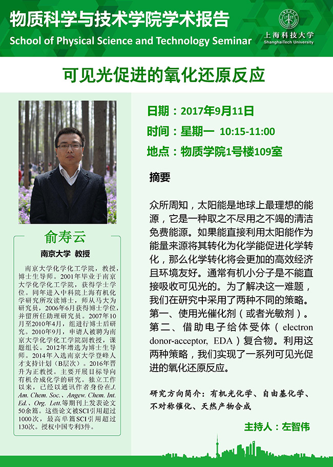 发布时间2017-09-06文章来源 物质科学与技术学院作者责任编辑