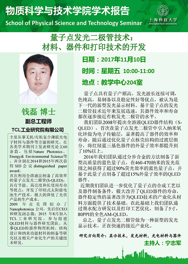 发布时间2017-11-06文章来源 物质科学与技术学院作者责任编辑