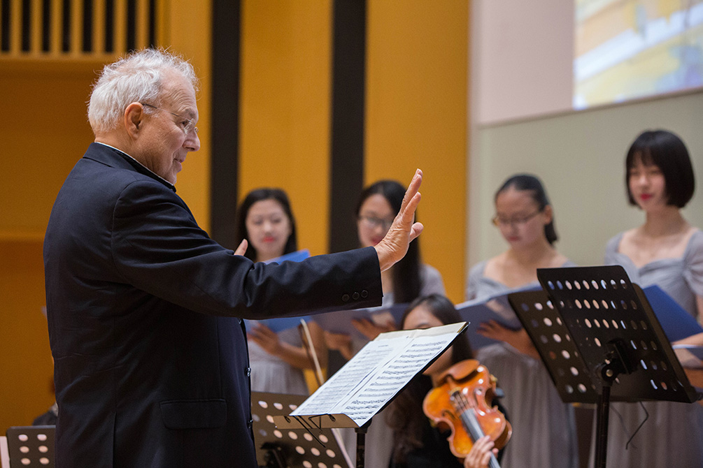 傍晚,帕多瓦音乐学院教授Maestro Balestracci与上海音乐学院钢琴家冯佳音女士,以及上科大学生合唱团和管弦乐团联袂为广大师生呈现了一场十八世纪早期威尼斯音乐风格的音乐会。曲目包括Marcello、Bigaglia、Vivaldi等文艺复兴时期意大利作曲家的代表作品。纯净、优雅的音乐给现场观众带来了美好的艺术享受。上科大学生合唱团和管弦乐团在有限的时间内与两位音乐家进行了排练,并学习了简单的意大利语歌曲,在这次音乐会中也受益良多。