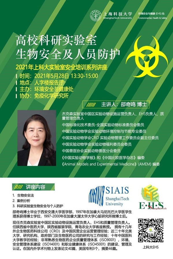 【实验室安全培训】高校科研实验室生物安全及人员防护
