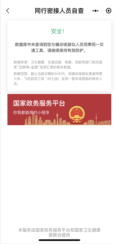 国家政务服务平台“同行密接人员自查”(下称“同行码”)