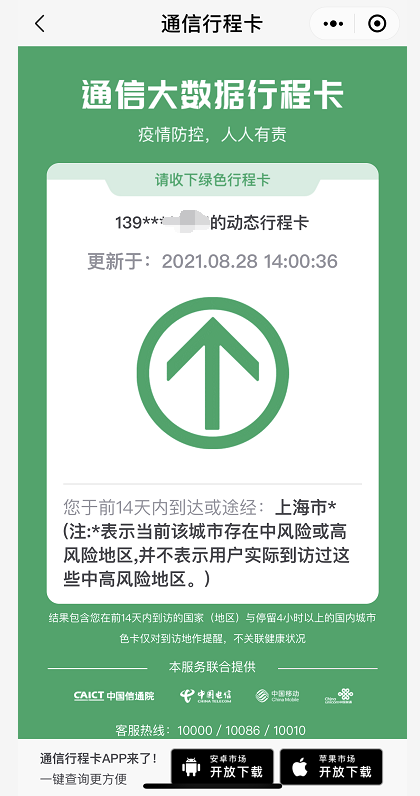 国务院小程序“通信大数据行程卡”(下称“行程码”,微信小程序搜索“通信行程卡”)