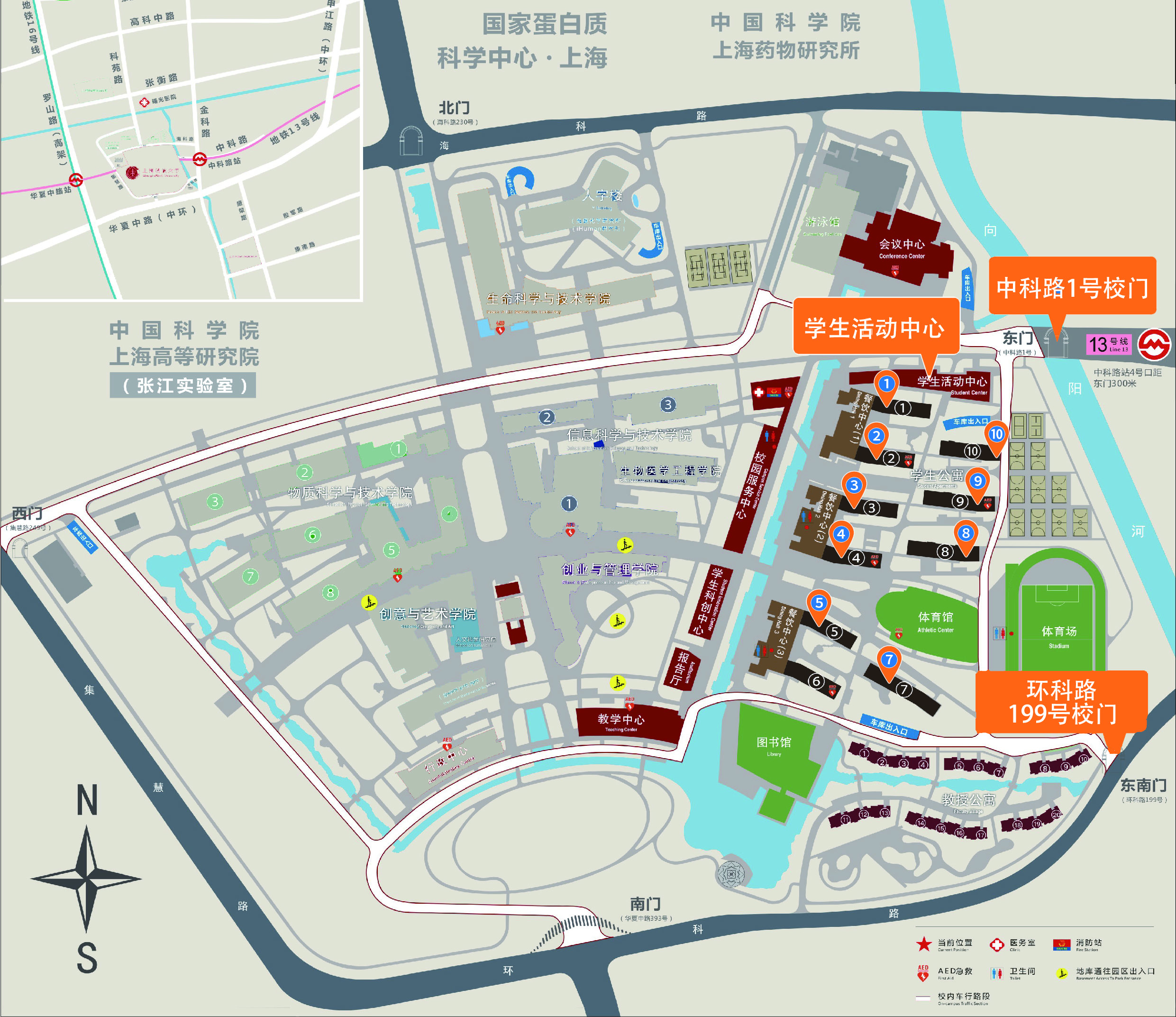 乘坐地铁13号线至中科路站,4号出口左转,沿人行道步行至中科路1号校门。(地铁13号线4号出口距离学生中心420米)
