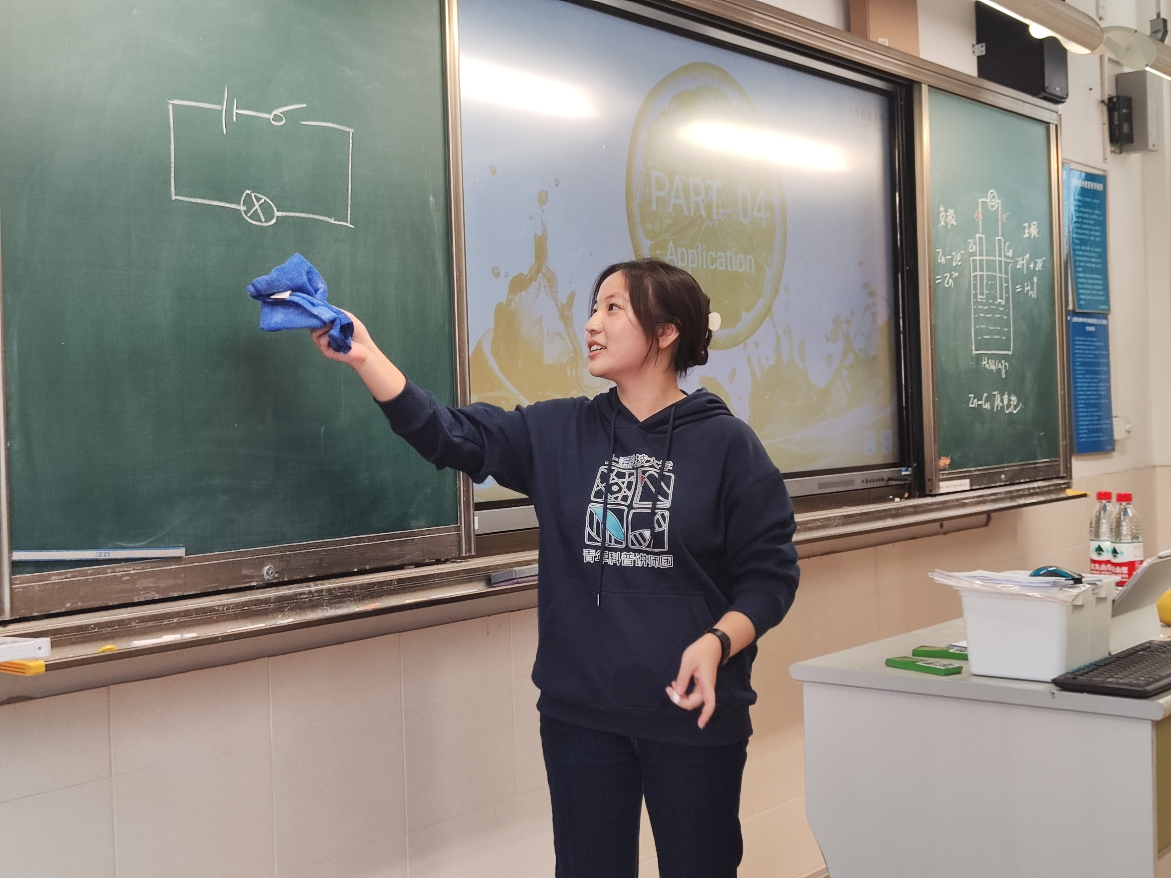 第一次课堂是给小学五年级的同学科普水果电池。由于第一次站上这样的讲台,我们的第一部分——引入水果电池没有铺垫好,导致小朋友们没有给出我们预先期待的回答,即使答案是正确的,但也不是我们想要引导的方向。再加上人数统计出现错误,导致我们的实验材料没有准备充分,每一组的人数较多因而体验感不佳。