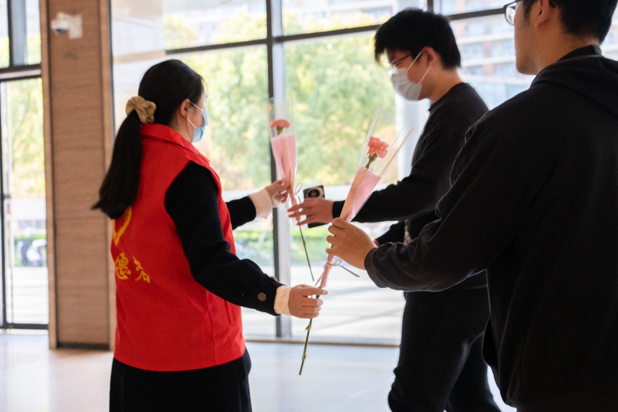 38位身穿红马甲的志愿者,热情不怠地为每位献血者颁发献血证、感谢状;绽放的鲜花,映衬着献血者们自豪的笑颜;签名墙变身光荣榜,引得过往师生驻足仰望。有52位同学受现场气氛感染,主动加入献血队伍。