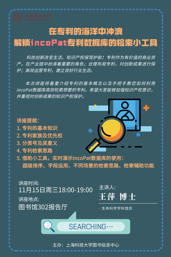 【图信中心】科研素养培训:在专利的海洋中冲浪——解锁incoPat专利数据库的检索小工具
