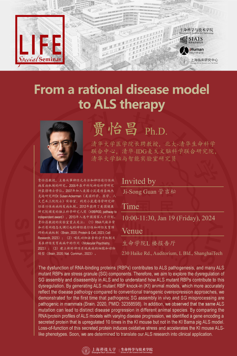 【生命学院】From a rational disease model to ALS therapy贾怡昌 Ph.D.