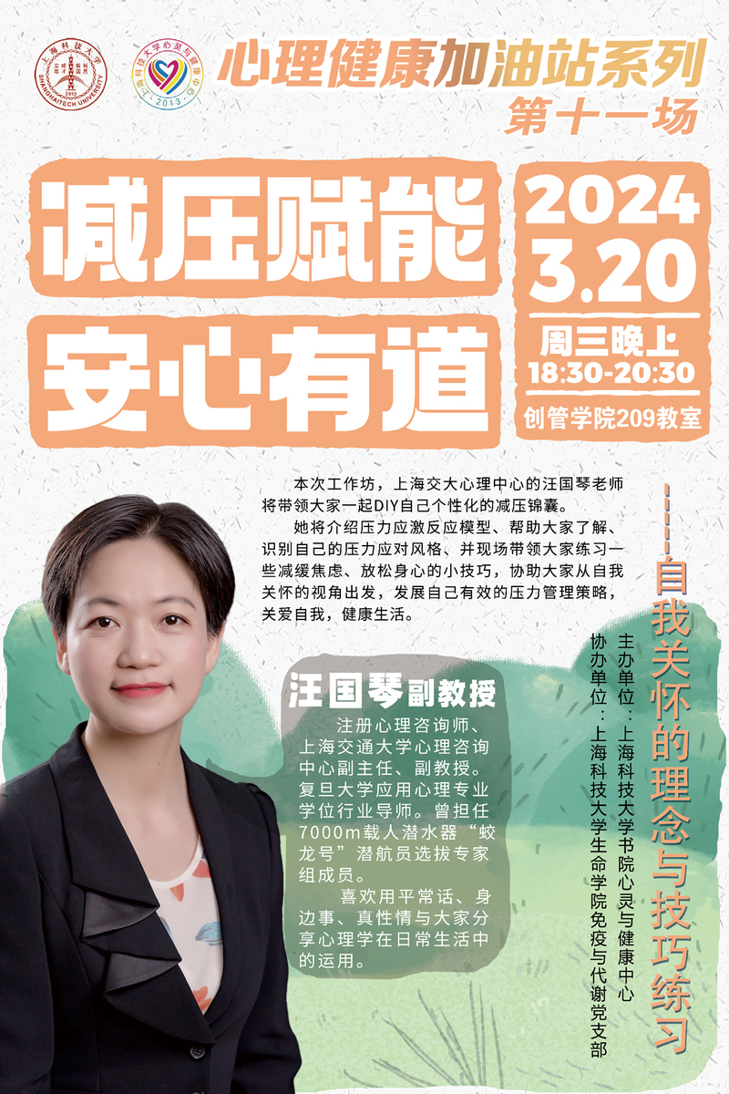 【书院】减压赋能 安心有道——自我关怀的理念与技巧练习