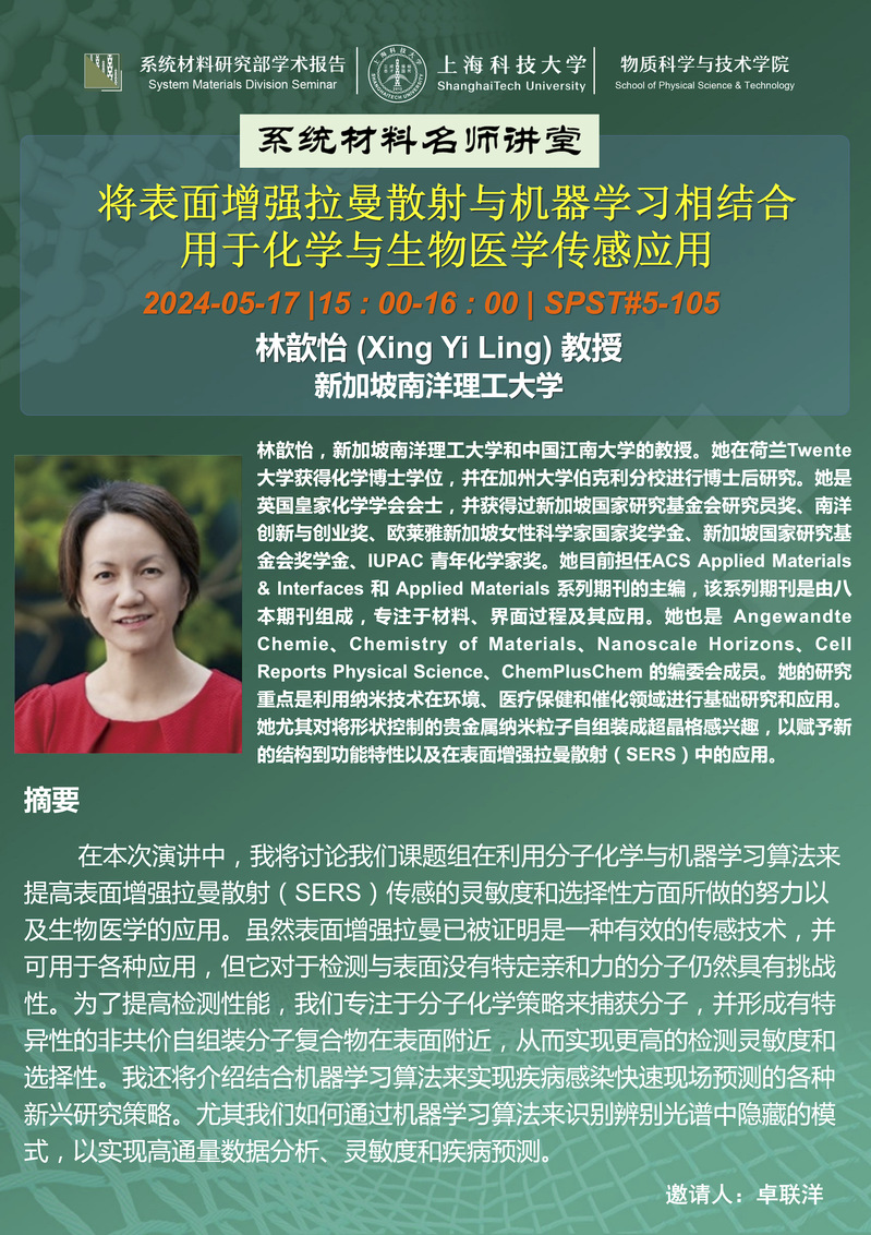 【物质学院】将表面增强拉曼散射与机器学习相结合用于化学与生物医学传感应用