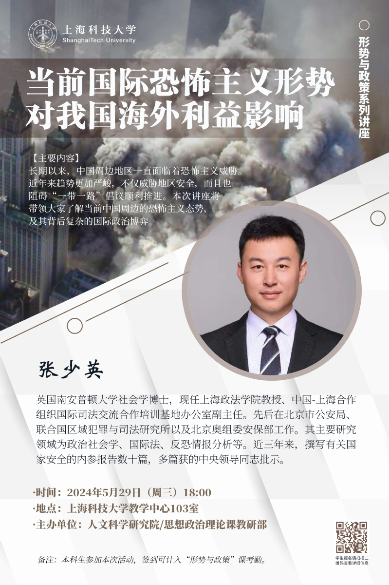 【人文科学研究院】形势与政策讲座:当前国际恐怖主义形势对我国海外利益影响