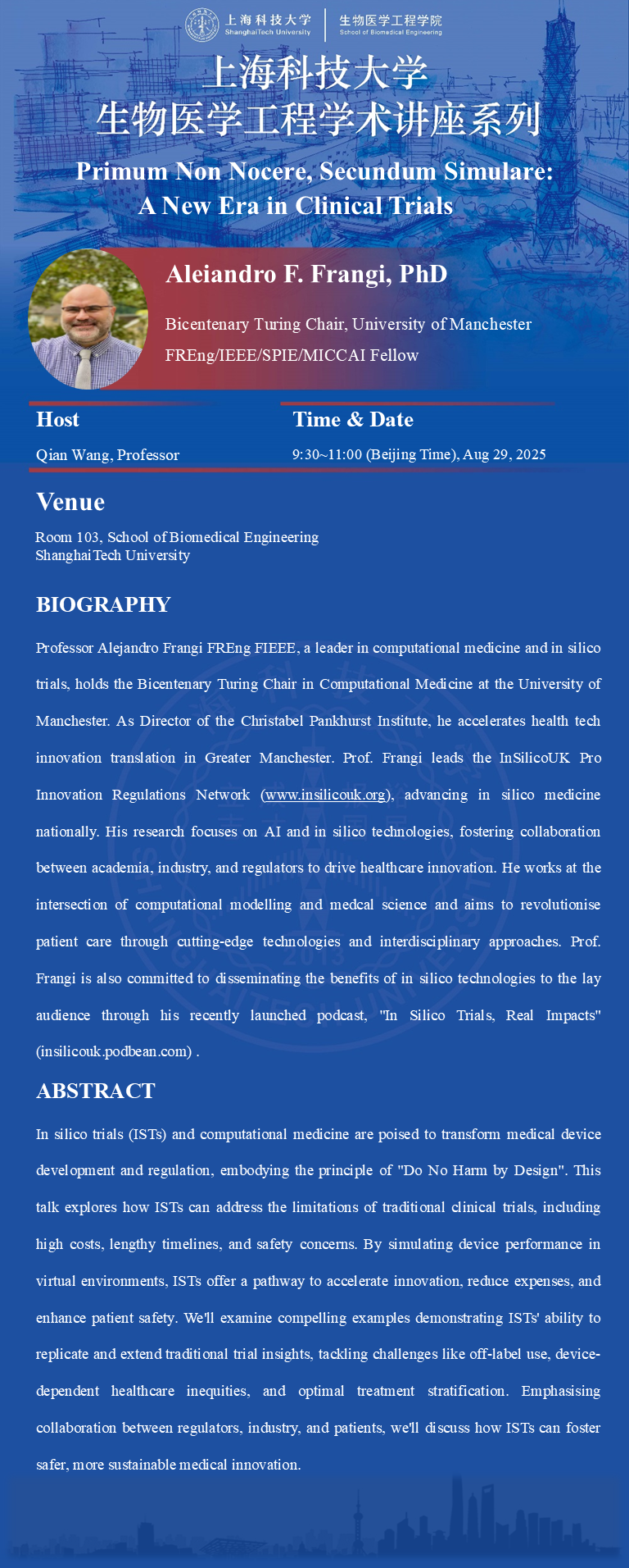 In silico trials (ISTs) and computational medicine are poised to transform medical device development and regulation, embodying the principle of "Do No Harm by Design". This talk explores how ISTs can address the limitations of traditional clinical trials, including high costs, lengthy timelines, and safety concerns. By simulating device performance in virtual environments, ISTs offer a pathway to accelerate innovation, reduce expenses, and enhance patient safety. We'll examine compelling examples demonstrating ISTs' ability to replicate and extend traditional trial insights, tackling challenges like off-label use, device-dependent healthcare inequities, and optimal treatment stratification. Emphasising collaboration between regulators, industry, and patients, we'll discuss how ISTs can foster safer, more sustainable medical innovation.
