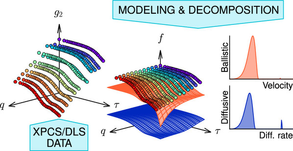 动态光散射(DLS)和X射线光子相关谱(XPCS)是探测软物质系统动力学的强大技术。德国美茵茨大学Tobias Eklund博士团队介绍了一种分析DLS和XPCS强度自相关数据的方法。方法通过对g2函数进行直接非线性建模,推广了已有的CONTIN和MULTIQ方法。能够在无需预先知道实验标度因子的情况下,对复杂的动力学进行分解。作者详细阐述了其数学公式、实现细节和求解策略,并展示了如何将软物质动力学数据分解为扩散速率/速度的分布。该方法的程序可在开源MATLAB获得,并为其应用和进一步开发提供基础。