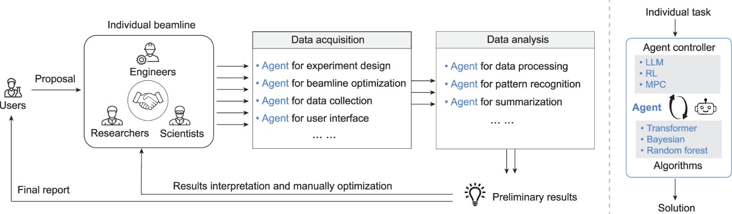 人工智能(AI)正日益融入同步辐射科学,但目前实现方式通常侧重于孤立的任务,限制了它们捕捉复杂因果关系并提供全面科学洞察的能力。香港中文大学Jizhou Li教授团队发表评论文章,讨论了代理式AI(Agentic AI)的变革潜力,这是一种能够自动化整个研究工作流程的新兴范式,有望彻底改变同步辐射科学中的材料表征。随着下一代同步辐射设施在全球范围内投入使用,将代理式AI嵌入这些设施有望显著缩短材料表征周期,并开启材料研究的新前沿。该评论在陈述代理式AI潜力的同时也讨论了其未来全面应用的思路与挑战。