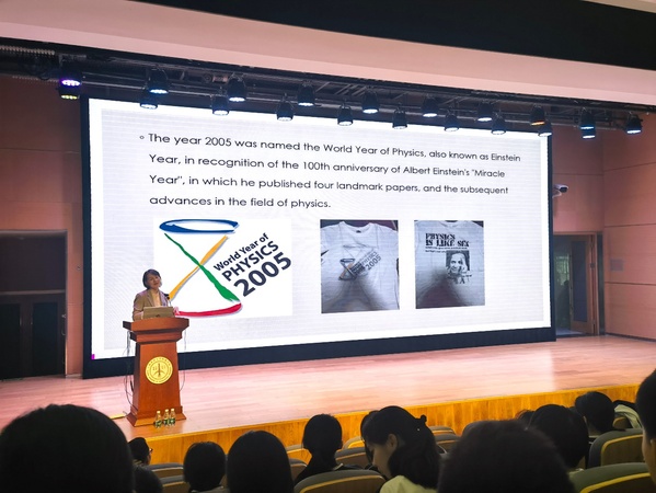 孙兆茹教授以自身从普通学生到科研工作者的成长轨迹为切入点,分享了通过坚持学习实现自我突破、收获成就感的过程。她告诉女同学们,相对于男生,女生学物理同样拥有自己的独特优势,鼓励女同学也勇敢追求科学梦想。
