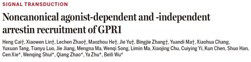 近日,上海科技大学iHuman研究所/生命科学与技术学院水雯箐课题组与中国科学院上海药物研究所以及临港实验室多个研究团队开展合作,在《科学》(Science)期刊发表题为“Noncanonical agonist-dependent and -independent arrestin recruitment of GPR1”的研究论文。该工作在解析趋化素受体GPR1的功能调控机制方面取得突破性进展,首次阐明了阻遏蛋白(β-arrestins)调控GPR1信号的分子机制,拓展了对G蛋白偶联受体非典型信号转导与调控机制的理解。