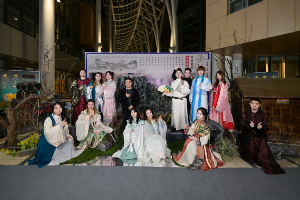 随后开启的古风集市延续了热烈氛围。“智慧之趣”体验区包含文字猜谜、鲁班锁解密;“匠心之手”体验区提供非遗漆扇制作、上科大主题拓印与插花等体验;“古风之韵”体验区安排了古风妆造与微缩景观制作;“市井之乐”体验区则重现了传统货郎市集场景。