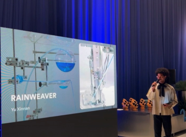 《雨织》由混合生态创意实验室工业设计专业本科生俞欣楠、王思涵、王九墨在邹悦教授的指导下共同完成,以独特的创意构想与实验精神在众多国际参赛作品中脱颖而出,成为本届设计周该奖项的唯一获奖作品。上科大学子在国际舞台上彰显了卓越的学术活力与创新能力。