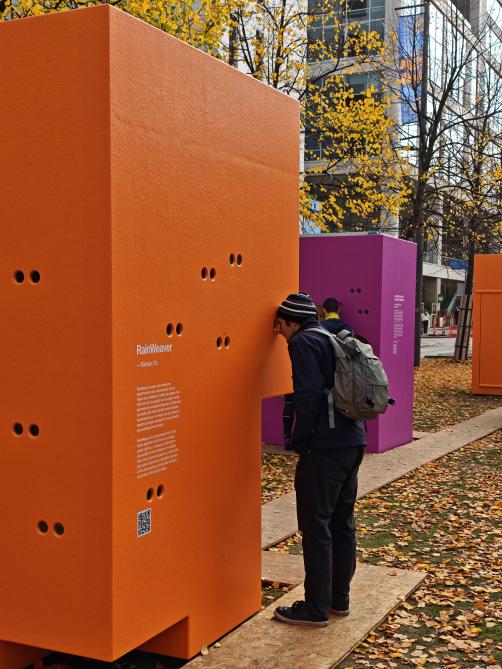实验室团队表示,作品最终呈现的不仅是一件织物,更是一种“倾听自然”的设计方法论——通过记录雨的行为、节奏与随机性,将自然介入视为设计过程中的协作者,而非外部变量。
