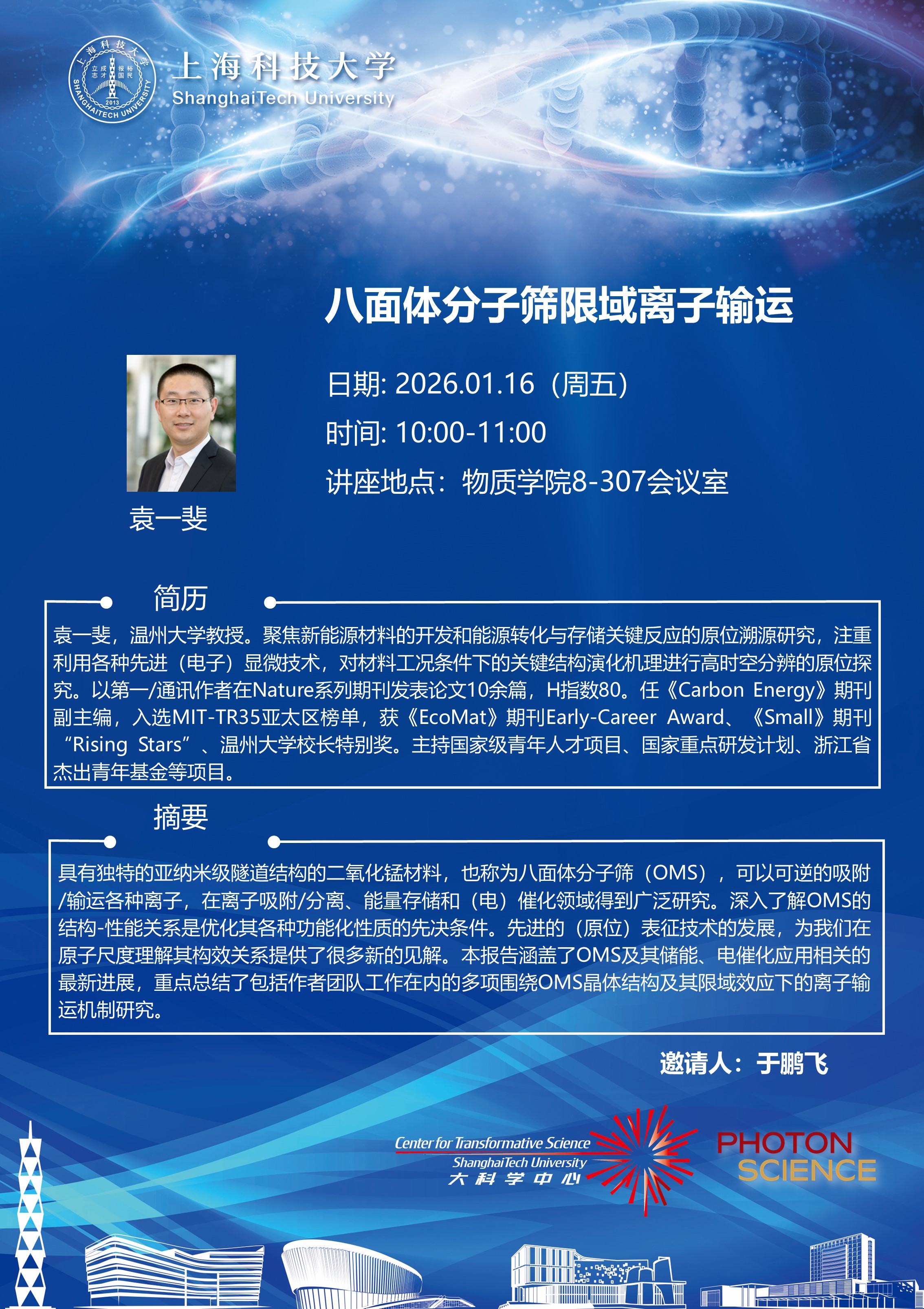 具有独特的亚纳米级隧道结构的二氧化锰材料,也称为八面体分子筛(OMS),可以可逆的吸附/输运各种离子,在离子吸附/分离、能量存储和(电)催化领域得到广泛研究。深入了解OMS的结构-性能关系是优化其各种功能化性质的先决条件。先进的(原位)表征技术的发展,为我们在原子尺度理解其构效关系提供了很多新的见解。本报告涵盖了OMS及其储能、电催化应用相关的最新进展,重点总结了包括作者团队工作在内的多项围绕OMS晶体结构及其限域效应下的离子输运机制研究。