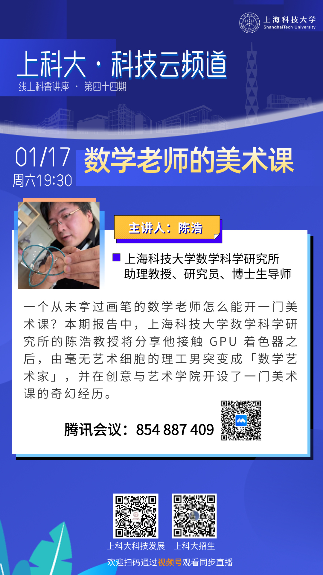 线上(腾讯会议,上科大科技发展、上科大招生视频号)