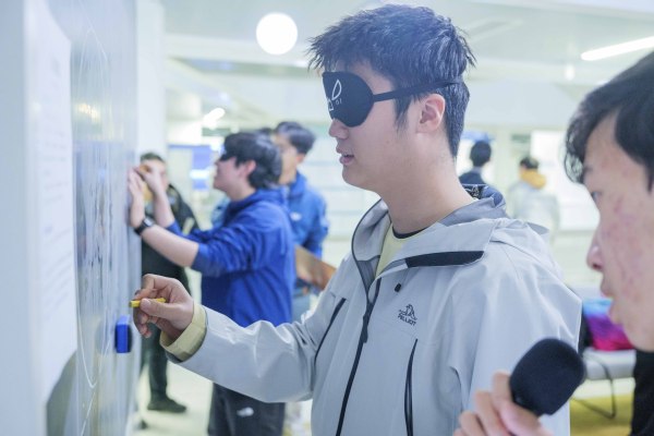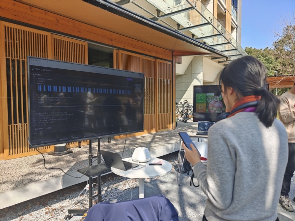 互动区人气更旺。“徒手画圆挑战”前,看挑战者一笔画出“最圆的圆”,系统打分与欢呼声让排行榜频频刷新;而“Vibe Cod‘in Pie”区域则成为全场焦点,AI实时将文字转化为代码,电子乐即刻奏响,师生同刷弹幕,在科技感十足的韵律中共享午后惬意。