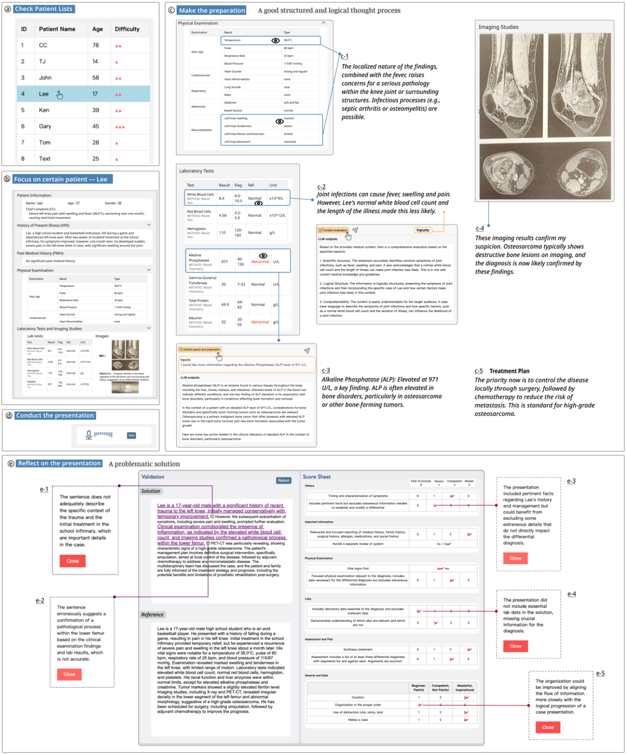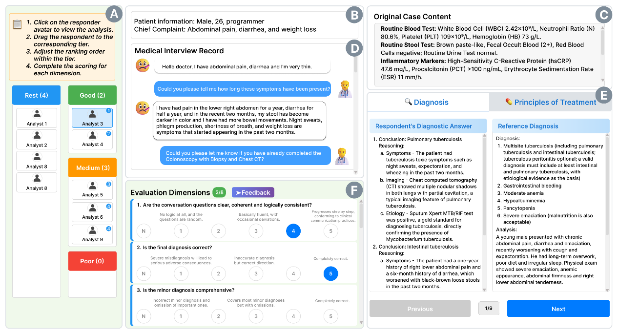 图2. 使用系统对不同的案例分析进行排序和具体维度的打分,收集用户感知的临床推理数据。