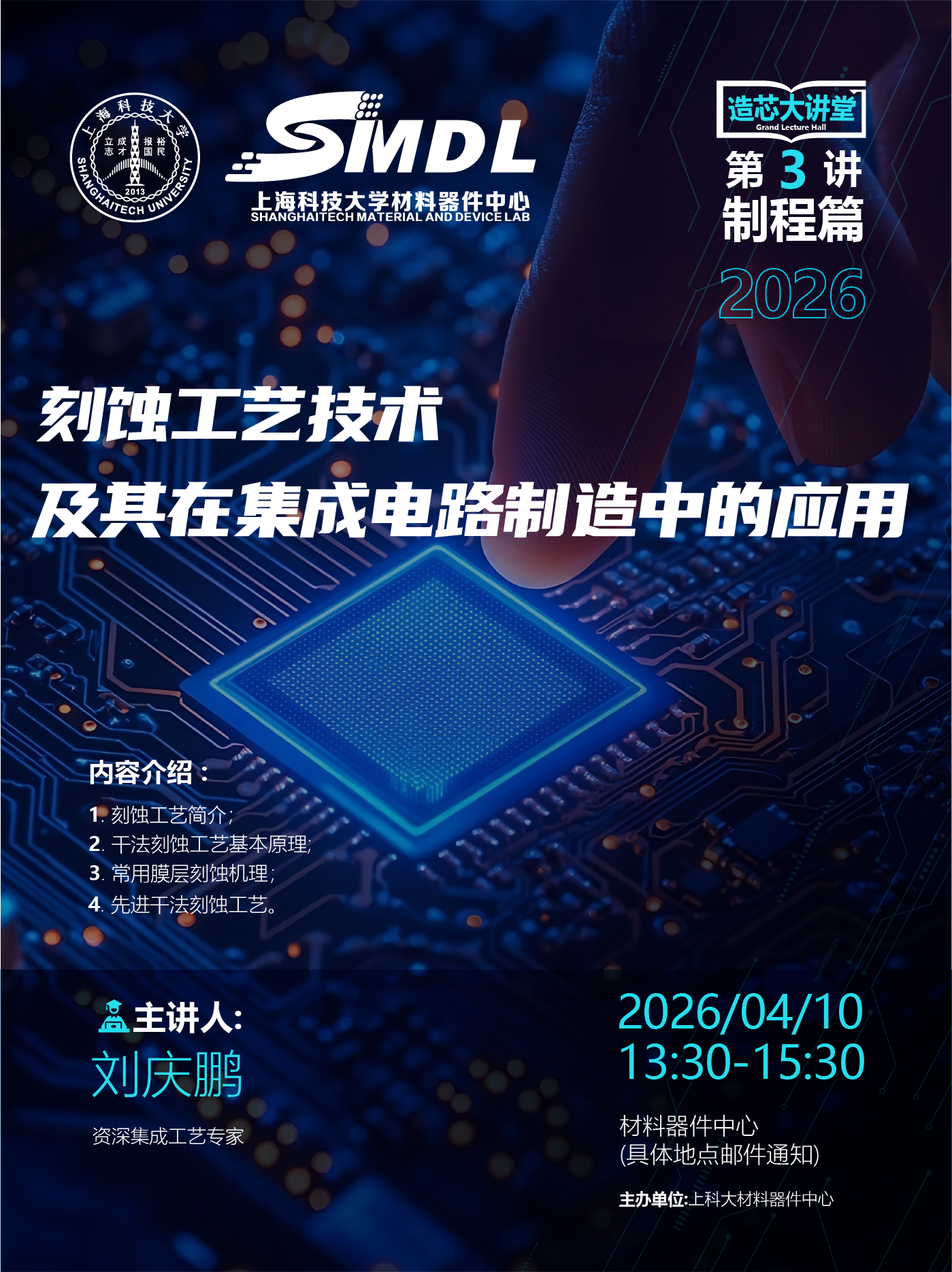 《造芯大讲堂》2026年第三讲【制程篇】——《刻蚀工艺技术及其在集成电路制造中的应用》